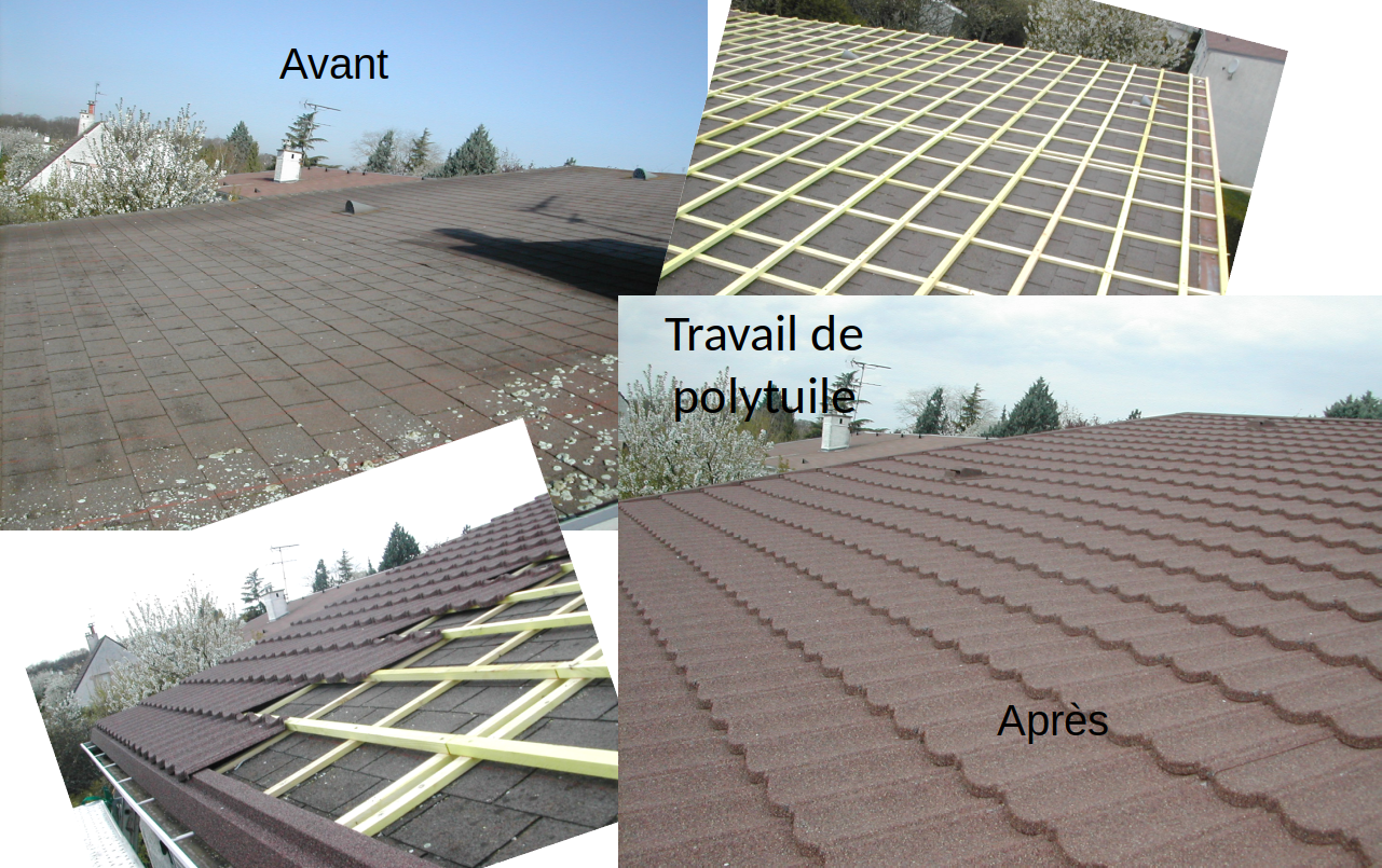 Pose de poly-tuile sur toiture par JM AzameTravail de la poly-tuile